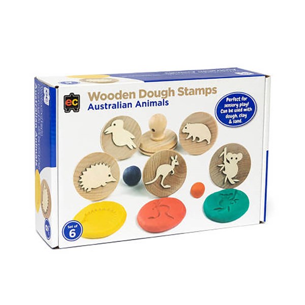 EDUCATIONAL COLOURS WOODEN DOUGH STAMPS AUSTRALIAN ANIMALS BOX 6