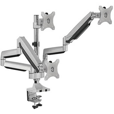 ERGOVIDA TRIPLE MONITOR ARM GAS SPRING WITH USB / AV PORTS METALLIC GREY