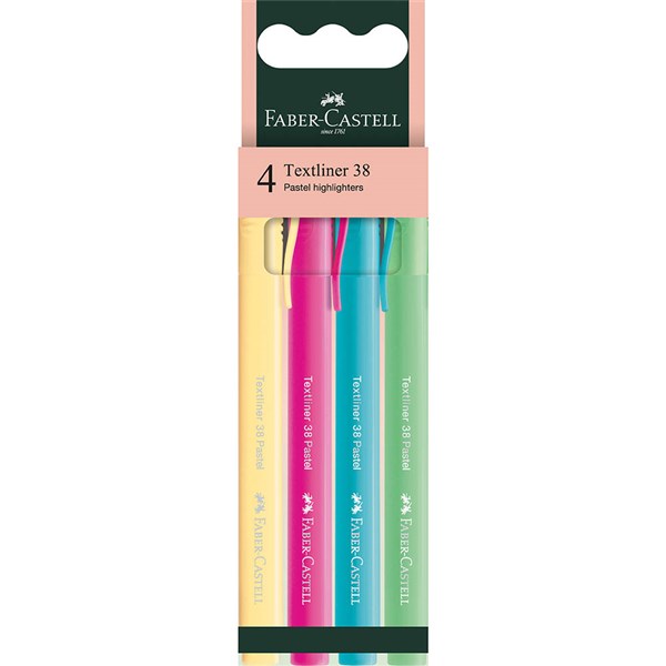 FABER-CASTELL TEXTLINER 38 PASTEL HIGHLIGHTERS ASSORTED PACK 4