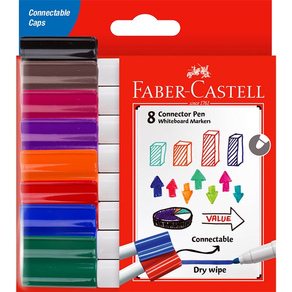 FABER-CASTELL WHITEBOARD MARKERS BULLET 2MM ASSORTED WALLET 8