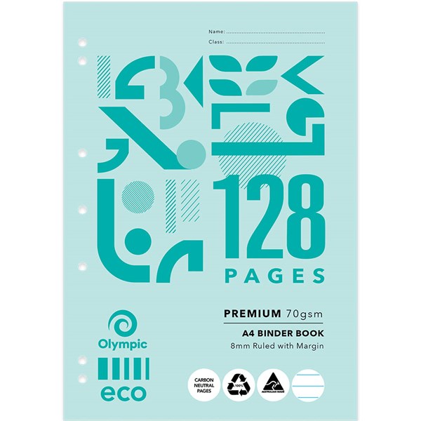OLYMPIC B812P ECO BINDER BOOK 8MM RULED 70GSM 128 PAGE A4