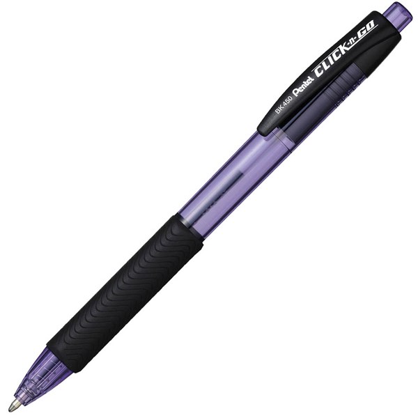 PENTEL BK450 CLICK N GO RETRACTABLE BALLPOINT PEN 1.0MM VIOLET BOX 12