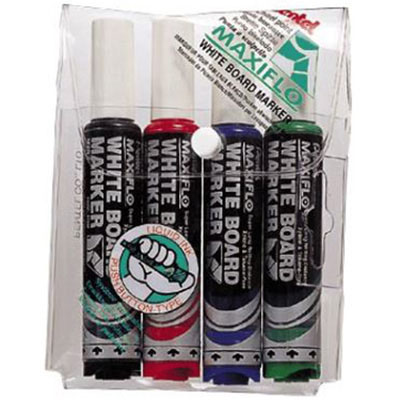 PENTEL MWL6 MAXIFLO WHITEBOARD MARKER CHISEL 7.0MM ASSORTED WALLET 4