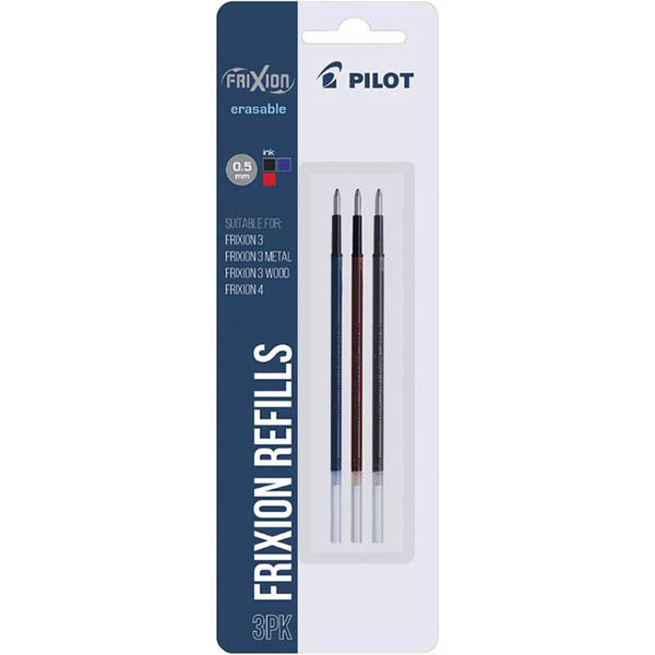 PILOT BLS-FR5 FRIXION ERASABLE ROLLERBALL GEL REFILL FINE 0.5MM ASSORTED PACK 3
