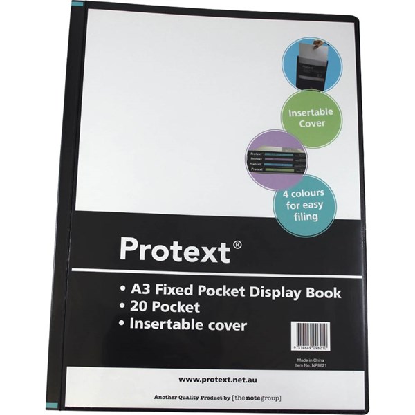 PROTEXT DISPLAY BOOK NON-REFILLABLE INSERT COVER 20 POCKET A3 BLACK