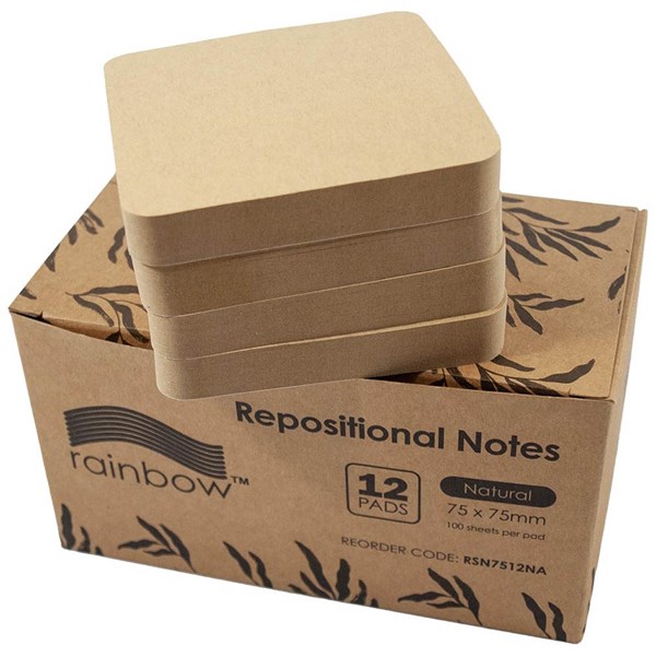 RAINBOW REPOSITIONAL NOTES 76 X 76MM 100 SHEET PAD NATURAL PACK 12