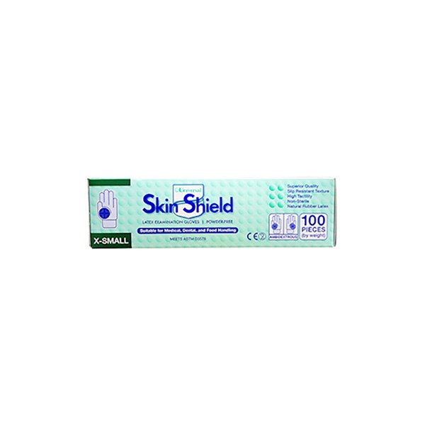 SKIN SHIELD BIODEGRADABLE LATEX EXAMINATION GLOVES POWDER FREE EXTRA SMALL CREAM BOX 100