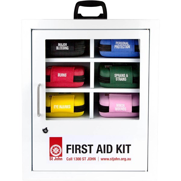 The St John Workplace Modular Wallmount Kit is uniquely designed and comes available in 6 modules with clear labels of the pertinent injury