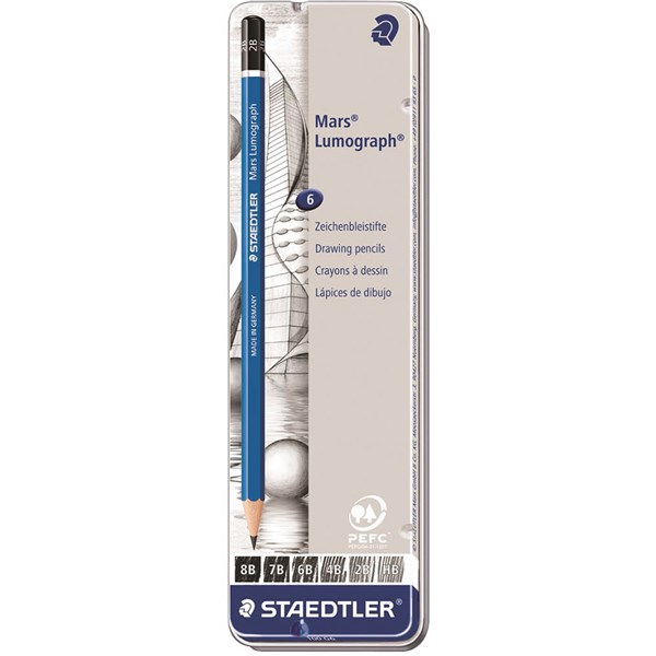 STAEDTLER 100 MARS LUMOGRAPH SKETCHING PENCIL ASSORTED DEGREES BOX 6
