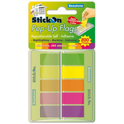 STICK-ON POP UP FLAGS 40 SHEETS 45 X 12MM ASSORTED PACK 5