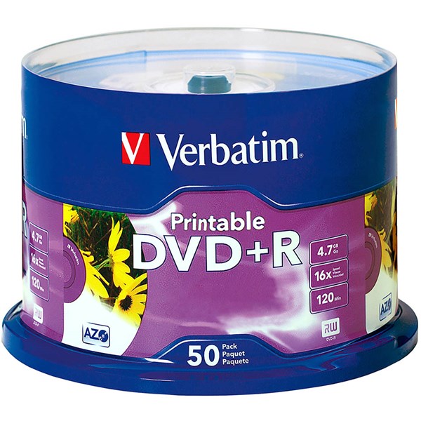 VERBATIM DVD+R 4.7GB 16X PRINTABLE SPINDLE WHITE PACK 50