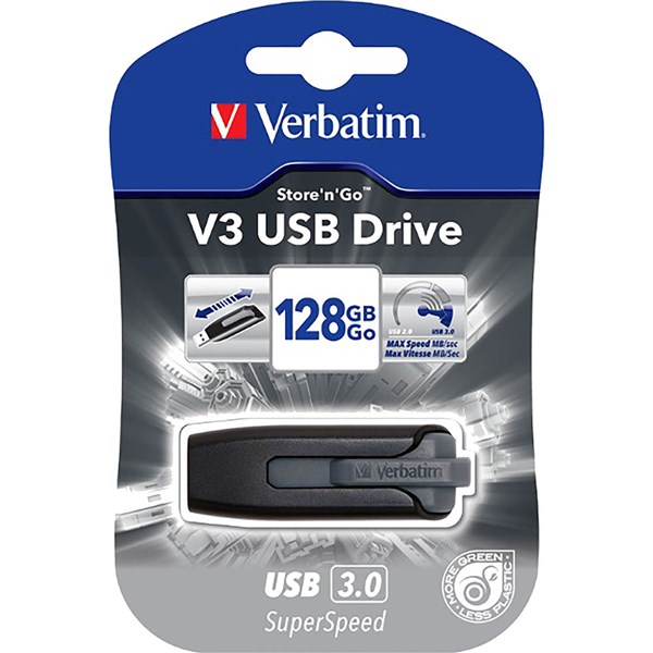 VERBATIM STORE-N-GO V3 USB DRIVE 128GB GREY