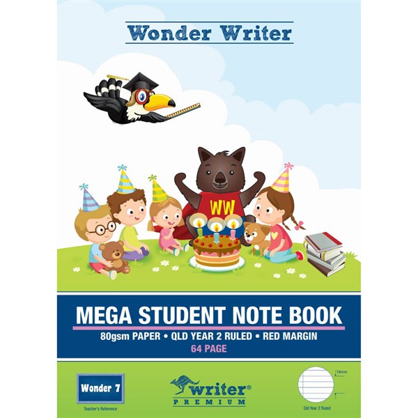 WONDER WRITER MEGA STUDENT NOTEBOOK QLD RULING YEAR 2 18MM 64 PAGE 330 X 240MM WONDER 7