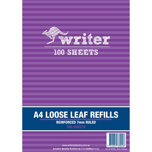 - Writer loose leaf refills can be used to refill pages in ring binders