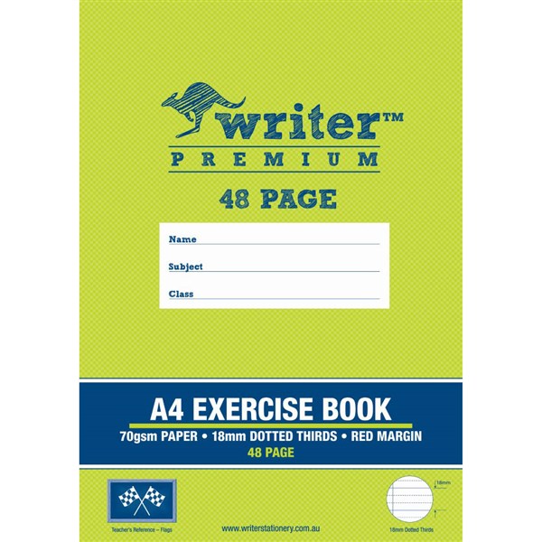 WRITER PREMIUM EXERCISE BOOK DOTTED THIRDS 18MM 70GSM 48 PAGE A4 FLAGS