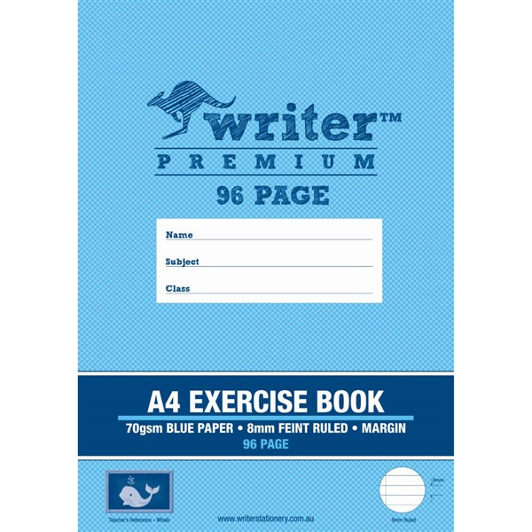 WRITER PREMIUM EXERCISE BOOK FEINT RULED 8MM 75GSM 96 PAGE A4 WHALE