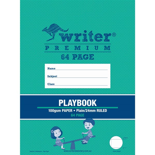 WRITER PREMIUM PLAYBOOK 14MM PLAIN/ RULED 100GSM 64 PAGE 330 X 240MM SWINGS