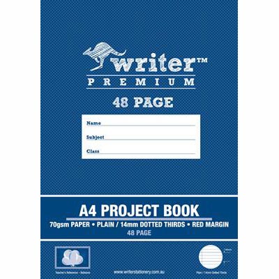 WRITER PREMIUM PROJECT BOOK 14MM PLAIN/DOTTED THIRDS 70GSM 48 PAGE A4 BALLOONS