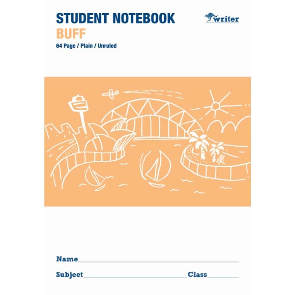 WRITER STUDENT NOTEBOOK PLAIN 64 PAGE 250 X 175MM BUFF